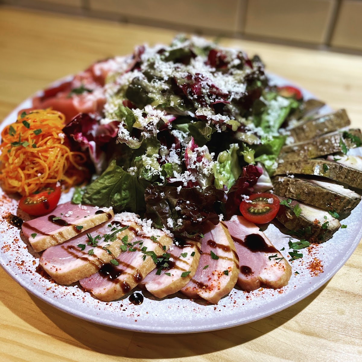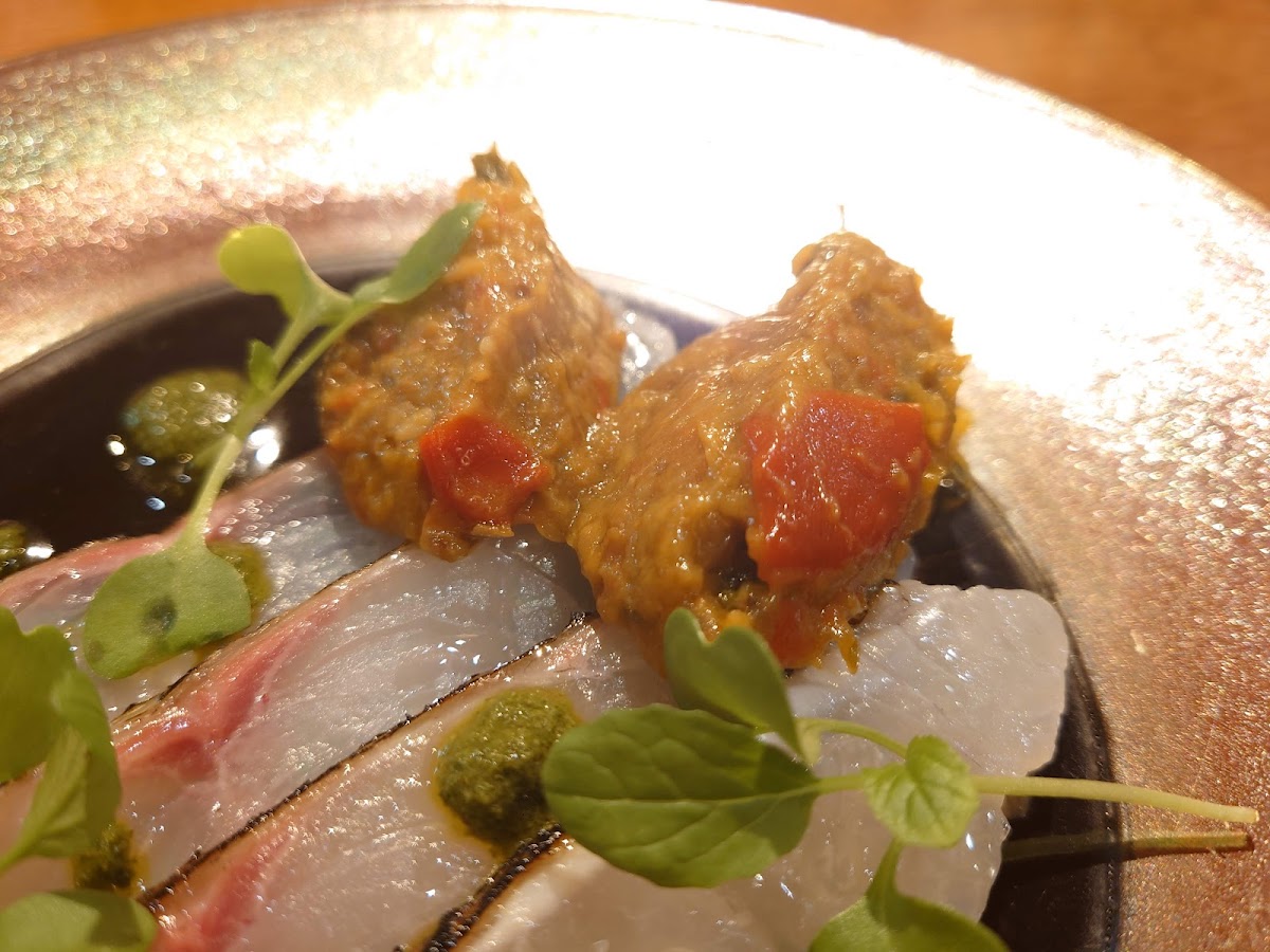 Another must-try is the 鯛のカルパッチョラタトゥイユ添え (Sea Bream Carpaccio with Ratatouille), which offers a fresh, delicate flavor that’s complemented beautifully by the vibrant ratatouille. This dish is a true testament to Petit Poisson’s commitment to bringing the freshest, most innovative ingredients to the table.
